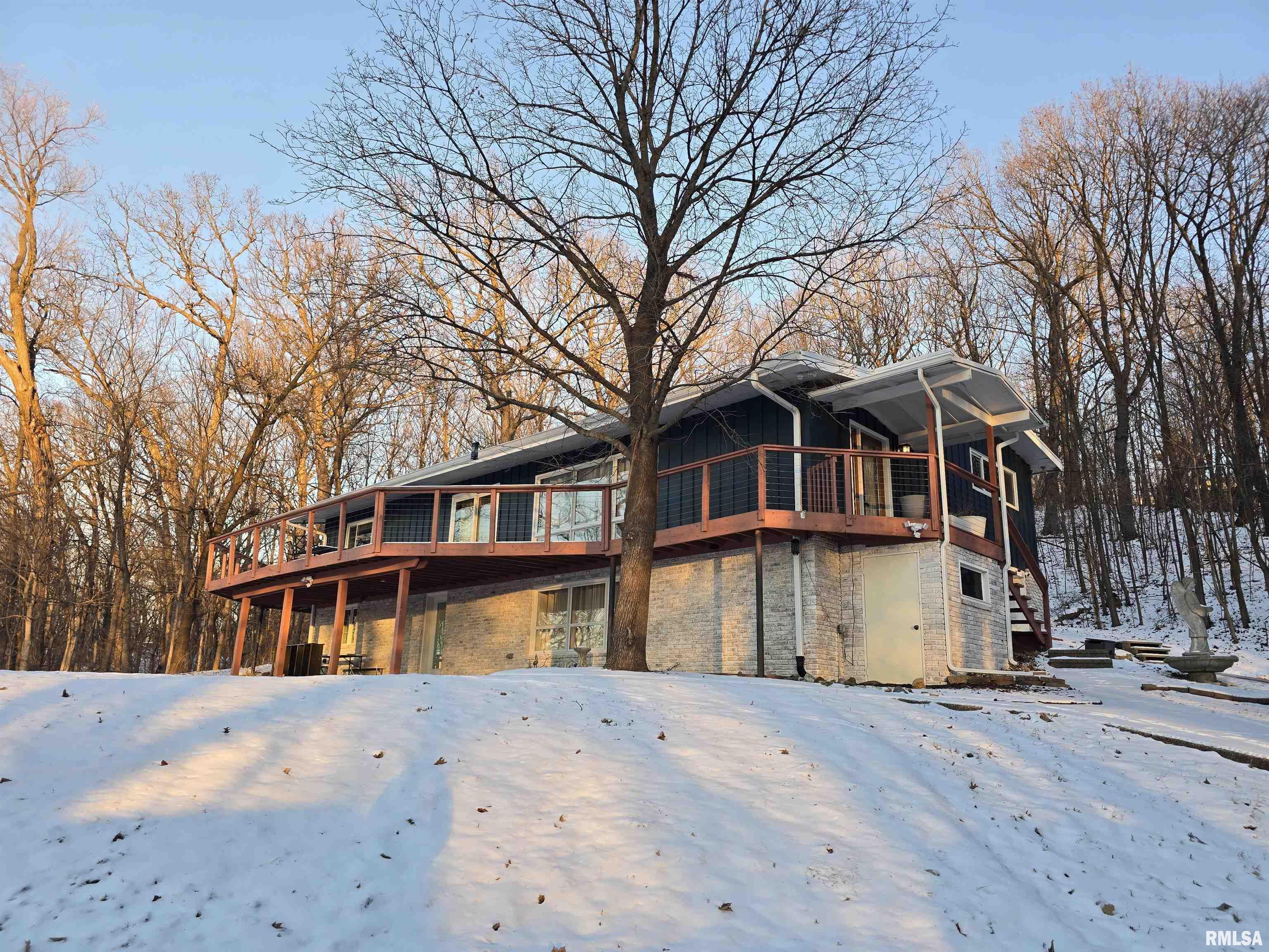 Welcome Home! Situated on over 4 acres, this stunning 4-bedroom, 2.5-bathroom offers scenic river views from interior living spaces, where large windows frame the natural landscape and bring the outdoors in! The custom kitchen offers abundant cabinetry and generous counter space, complemented by beautiful stainless appliances and opens out to a large deck for entertaining guests. An oversized window above the kitchen sink overlooks the front of the property and captures the views. The walk out lower level offers more exceptional views and features a cozy fireplace, a spacious fourth bedroom with egress window, a full remodeled bathroom and is ideal for guests, a home office or extended living. An oversized heated tandem 3-car garage provides ample room for vehicles, tools and hobbies. Tour, fall in love, and make it your own! Appliances stay but sold "as is". Room sizes and square footage are estimated, not guaranteed to be correct. SQ. FT. per Tazewell County records.
